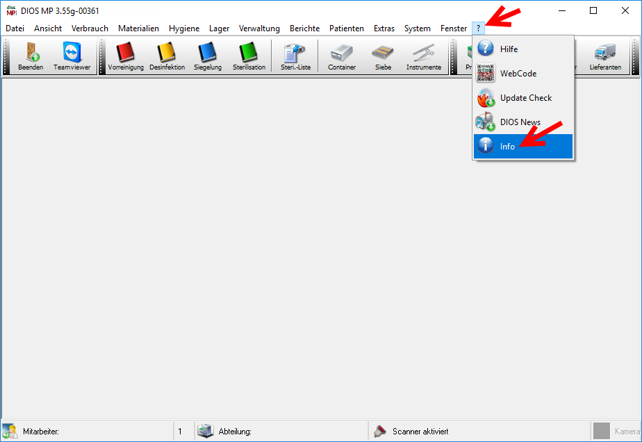 zunächst, welche diosMP Programmversion auf Ihrem PC installiert ist.
