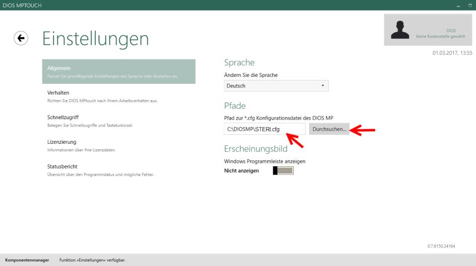 ausgewählt werden. Starten Sie diosMP touch neu, um die Änderungen zu übernehmen.