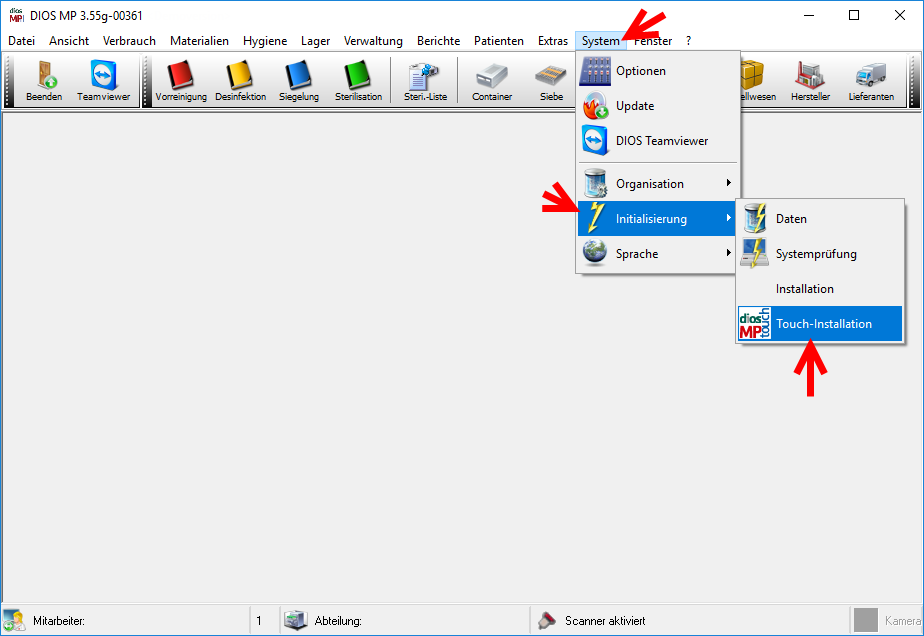 Für den Betrieb von diosMP touch sind folgende Vorbereitungen notwendig: