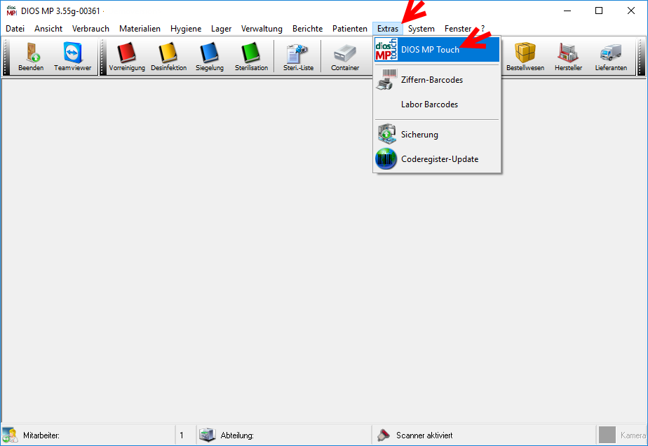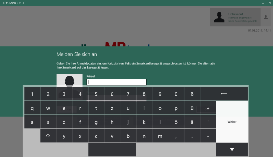 Für den Betrieb von diosMP touch ist aktivierte Mitarbeiter gesteuerte Anmeldung sowie Freigabe