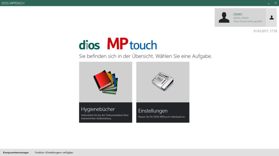 Für den Betrieb von diosMP touch ist die aktuellste diosMP Version notwendig. Prüfen Sie daher