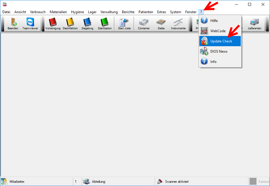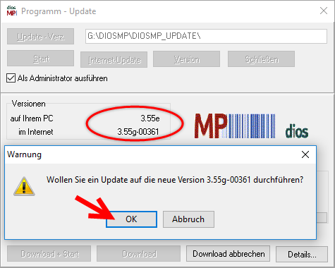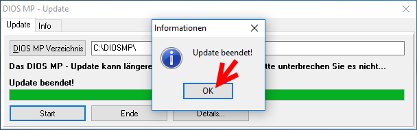 Zum Zeitpunkt des Updates darf nur eine Arbeitsstation diosMP geöffnet haben. Schließen Sie alle