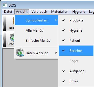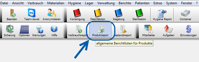 Der Button Produktreport wird angezeigt, nachdem über den Menüpunkt Ansicht, Auswahlpunkt Symbolleisten die Symbolleiste Berichte aktiviert wurde.