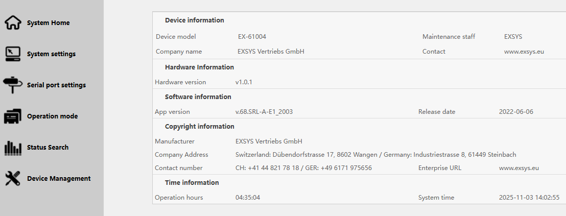 Gehen Sie in der Weboberfläche des COM-Servers auf die Kategorie ?Operation mode? (linke Seite).