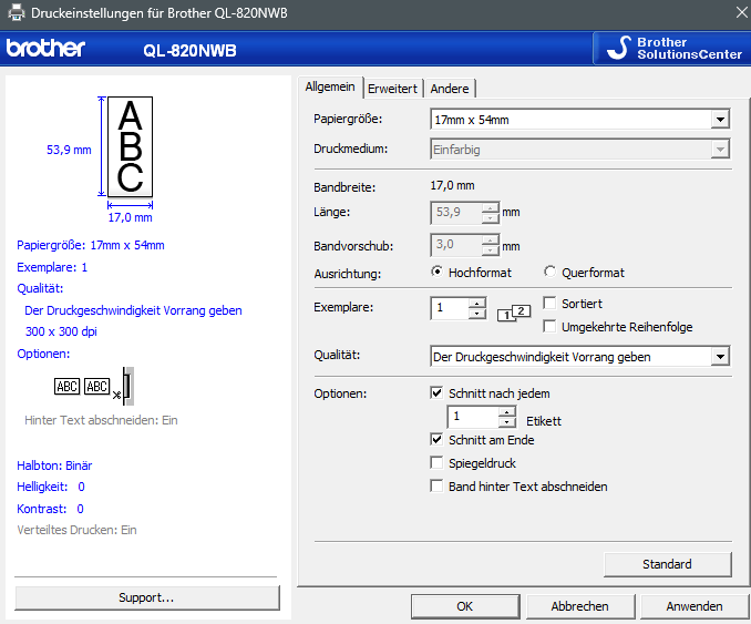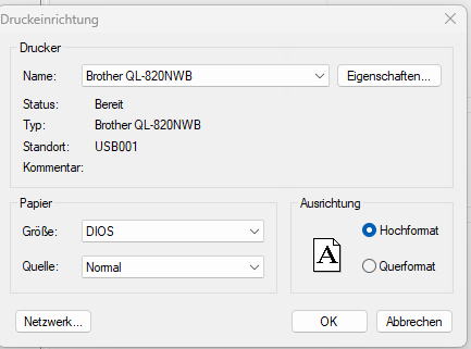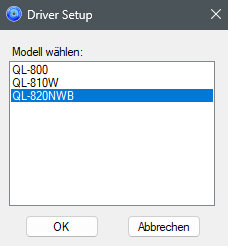 Wählen Sie nun das Gerätemodell ihres Etiketten-Druckers (QL-820NWB).