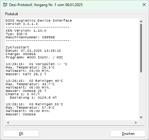 Klicken Sie auf den Menüeintrag Chargenprotokoll und anschließend auf die gewünschte Charge. Es erscheint die Detailansicht wie folgt: