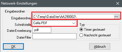 Geben Sie unter "Eingabeordner" den Pfad an, welchen Sie in DataSter hinterlegt haben.