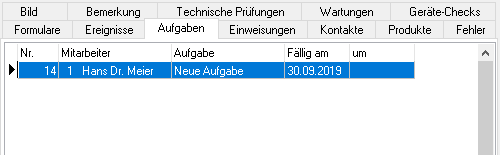 Zurück im Fenster Geräte findet sich nun im Unterregister Aufgaben die soeben in der Aufgabenverwaltung erstellte Aufgabe.