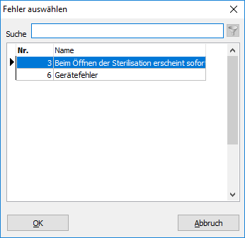 Direkt erscheint ein Auswahlfenster, in dem alle offenen Fehler ausgegeben werden. Treffen Sie Ihre Auswahl und bestätigen mit OK.
