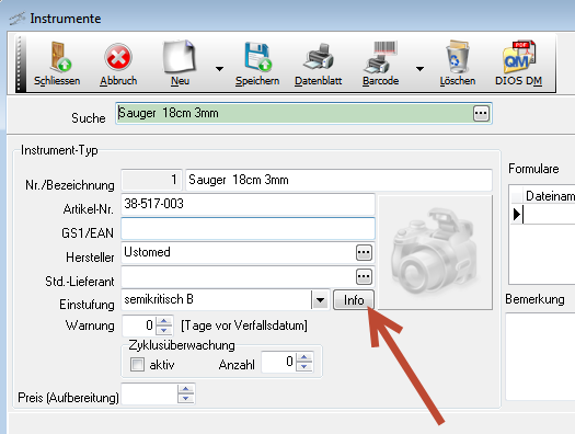 • Der Begriff Kategorie wurde in allen Hygiene Modulen durch die korrekte Bezeichnung Einstufung ersetzt. Eine Muster-Liste zur Einstufung von Medizinprodukten kann nun auch im Programm mit dem neuen Info-Button innerhalb der Instrumentenverwaltung für den deutschsprachigen Bereich aufgerufen werden: