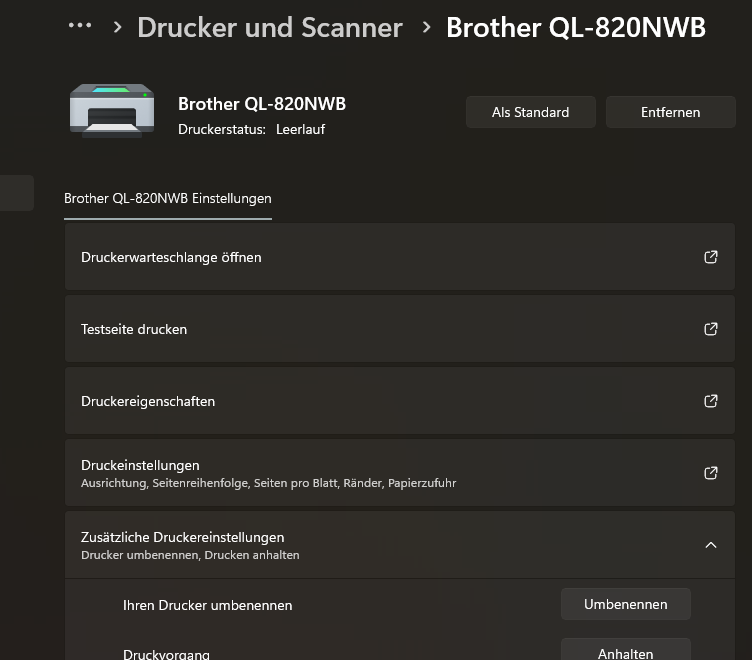 Gehen Sie hierzu in das Windows-Menü ?Drucker und Scanner? und wählen Sie Ihren Etiketten-Drucker aus.