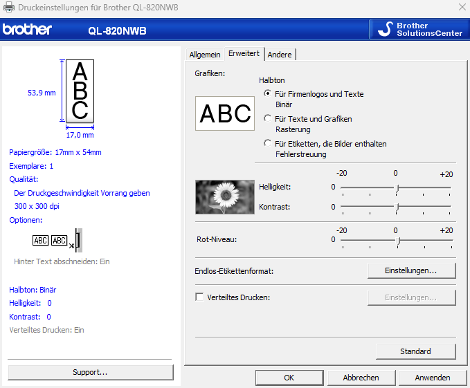 Abbildung 8: erweiterte Druckereinstellungen