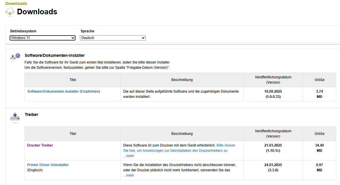 Abbildung 1: Download Drucker-Treiber