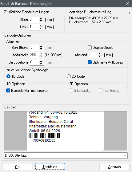 Abbildung 11: Druckereinstellungen in diosMP übernehmen